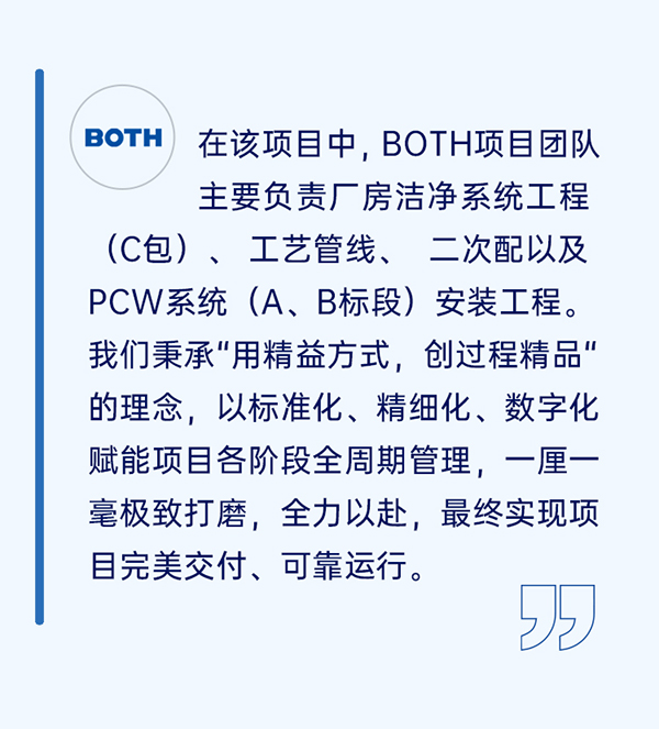 作為國內(nèi)領先的潔凈室系統(tǒng)集成解決方案提供商,在新型顯示領域,BOTH長期深耕超大面積電子潔凈廠房核心工藝端,全過程參與近30座超級工廠建設,積淀了行業(yè)領先的潔凈室設計、施工、管理、測試調(diào)試等核心技術。